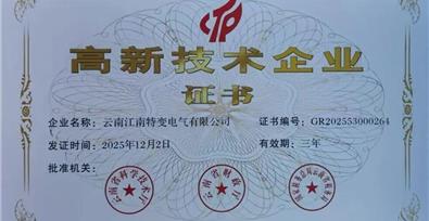 日前,从高新技术企业认定管理工作网传来喜讯,大理州企业家协会副会长单位——云南江南特变电气有限公司顺利通过云南省相关部门复审,再度获评省级"高新技术企业"。这一荣誉标志着公司科技创新实力与价值创造持续获得云南省相关部门权威认可,也为企业财务稳健增长与价值提升筑牢根基。高新技术企业资质是企业核心竞争力的重要标尺,认定复审标准严苛,涵盖技术研发投入、成果转化能力、知识产权储备、财务增长质量、企业管理规范等多个维度。自2022年首次获评以来,公司锚定"科技兴企"战略,坚定不移地走自主创新之路,将科技创新深度融入